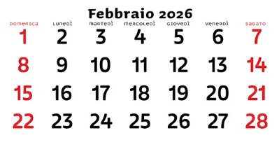 Calendario Febbraio 2026