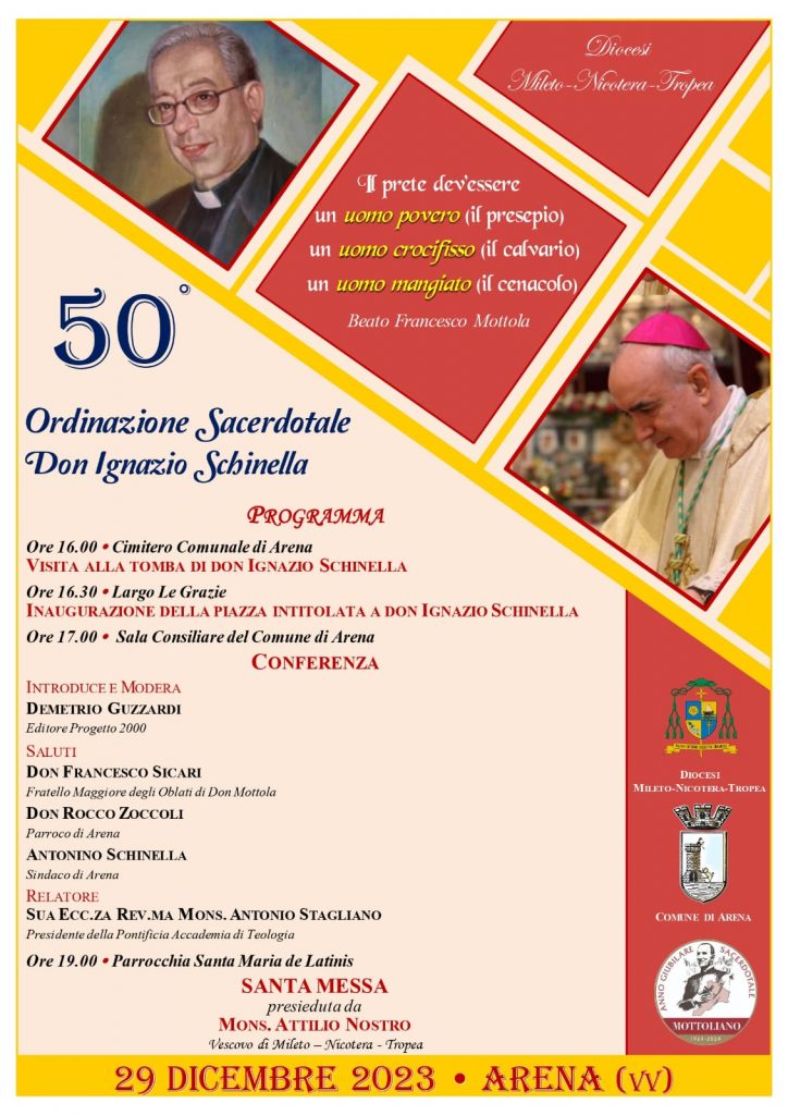 Il 29 dicembre p.v. don Ignazio Schinella avrebbe festeggiato il suo 50° anniversario di ordinazione presbiterale .