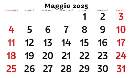 Calendario Maggio 2025