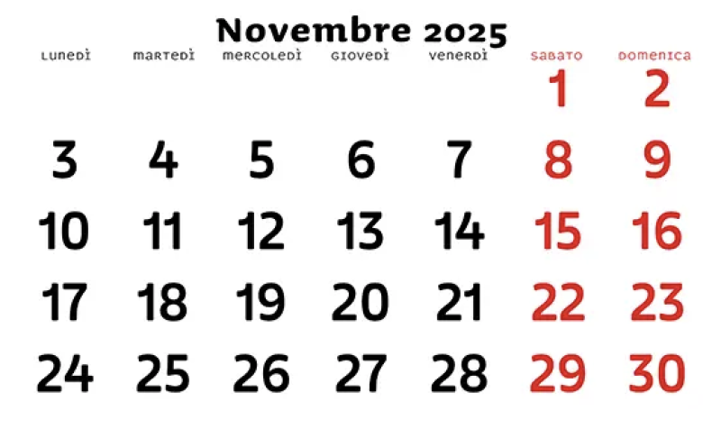 Calendario Novembre 2025