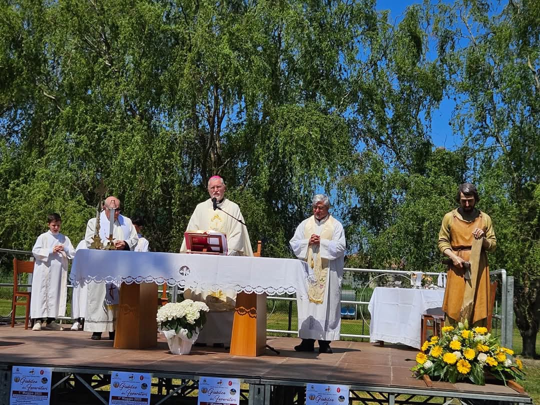 La giornata si è aperta alle ore 9.00 presso la parrocchia di Bivona, con il raduno dei lavoratori e dei rappresentanti delle realtà partecipanti. Da lì ha preso avvio un pellegrinaggio verso il piazzale della zona industriale Bignone, davanti allo stabilimento della Baker Hughes, luogo simbolico della storia produttiva della provincia. La processione è stata guidata dalla statua di San Giuseppe Lavoratore, portata a spalla dai lavoratori stessi, a testimonianza concreta del legame tra fede e lavoro, tra speranza e fatica quotidiana.