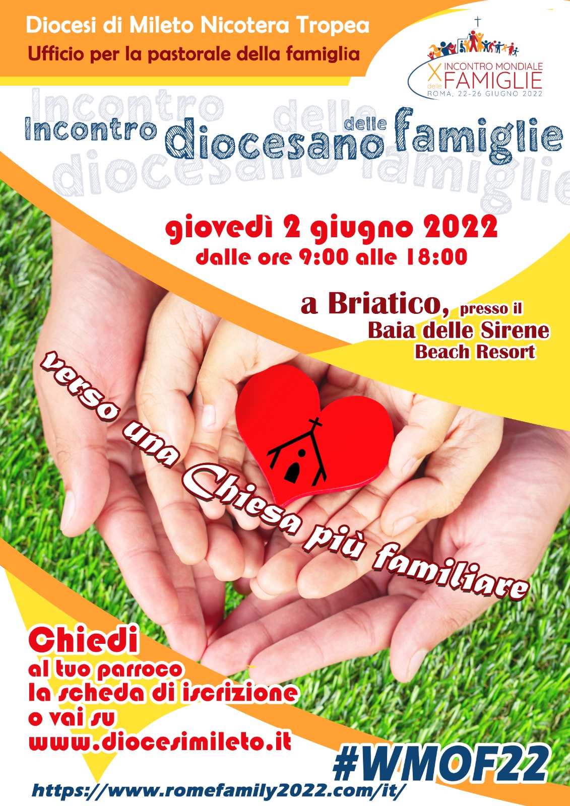 Eventi in Diocesi 23 Maggio 2022 Incontro diocesano delle famiglie giovedì 2 Giugno Descrizione: Incontro organizzato dall’Ufficio diocesano per la pastorale della famiglia. Inizio: 02/06/2022 09:00 Fine: 02/06/2022 18:00 Categorie: Eventi in Diocesi Regione: Calabria Paese: Italia Locandina dell'incontro