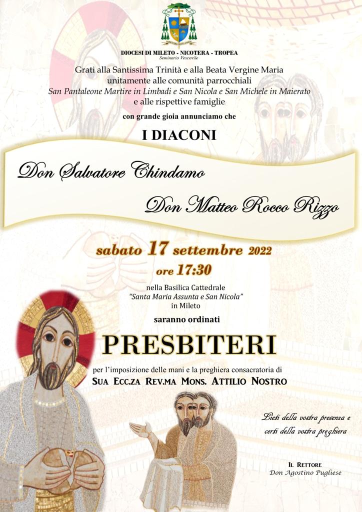 Ordinazione presbiterale dei diaconi don Salvatore Chindamo e don Matteo Rocco Rizzo.